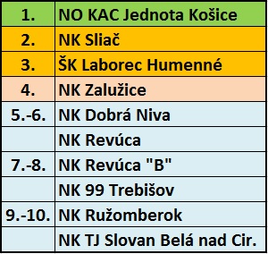 Tabuľka 1. SNL 2017 - východ (základná časť)